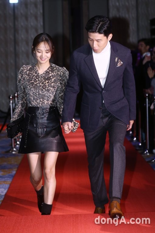 김무열 윤승아 부부가 27일 오후 서울시 중구 포시즌스호텔에서 열린 제10회 더블유 코리아 ‘유방암 인식 향상 캠페인 자선 행사’에 참석해 포토타임을 하고 있다.