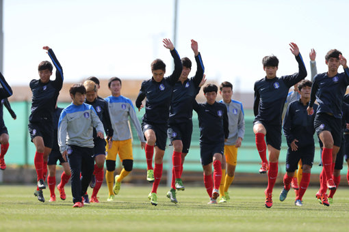 리틀 태극전사들이 2015 FIFA U-17 월드컵이 열리고 있는 칠레 라 세레나에서 27일(한국시간) 16강전에 대비한 훈련을 하고 있다. 벨기에와의 16강전은 29일 펼쳐진다. 사진제공|대한축구협회