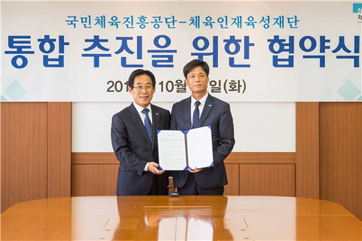 국민체육진흥공단과 체육인재육성재단은 27일 서울 송파구 올림픽회관에서 체육 분야 인재 발굴과 육성 기능의 발전을 위해 내년 1월 1일자로 통합하는 데 합의하는 협약을 체결했다. 양 조직의 통합은 5월 기획재정부가 발표한 ‘공공기관 기능조정 방안’에 따른 것으로, 정부는 체육 진흥과 체육인재 양성 기능의 시너지 창출을 위해 두 기관의 통합이 필요하다고 판단했다.