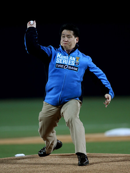 ●…독립운동가 안중근 의사의 증손자 안도용(사진) 씨가 27일 대구구장에서 열린 한국시리즈 2차전의 시구를 맡았다. KBO는 안 의사가 이토 히로부미 저격 계획을 대구에서 시작했고, 올해가 의거 106주년인 것을 고려해 미국에 거주하는 증손자 안 씨를 초청했다. 이날 경기 전 애국가는 가수 에일리가 불렀다.