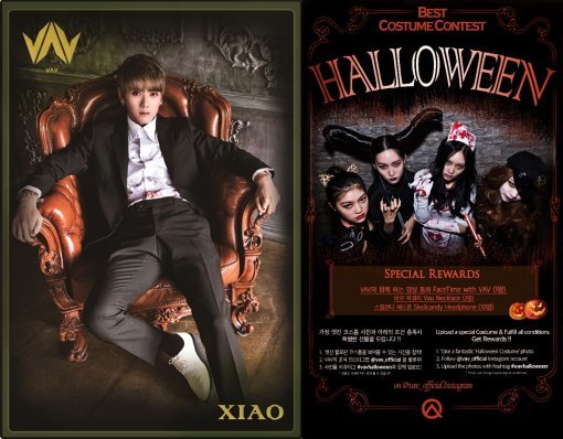 특히 VAV는 공식 인스타그램에서 ‘할로윈 코스튬 콘테스트’를 개최한다. 할로윈데이에 준비한 자신만의 특별한 코스튬사진을 VAV 공식인스타그램 팔로우후 해시태크(#vavhalloween)을 붙여 올려주면 된다. 가장 멋진 코스튬 이미지를 올려준 1명에게는 브이에이브이와 영상통화 기회가 제공된다.