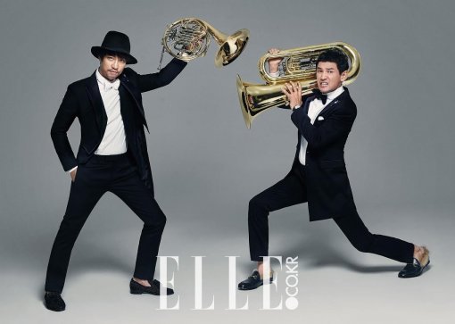 뮤지컬 ‘오케피’의 두 주역 황정민과 오만석이 ‘엘르’와 화보 촬영을 진행했다.