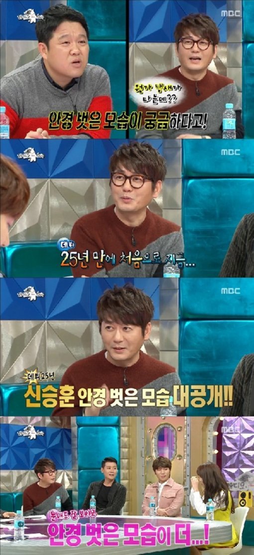 가수 신승훈이 25년 만에 안경 벗은 모습을 공개해 화제를 모았다.