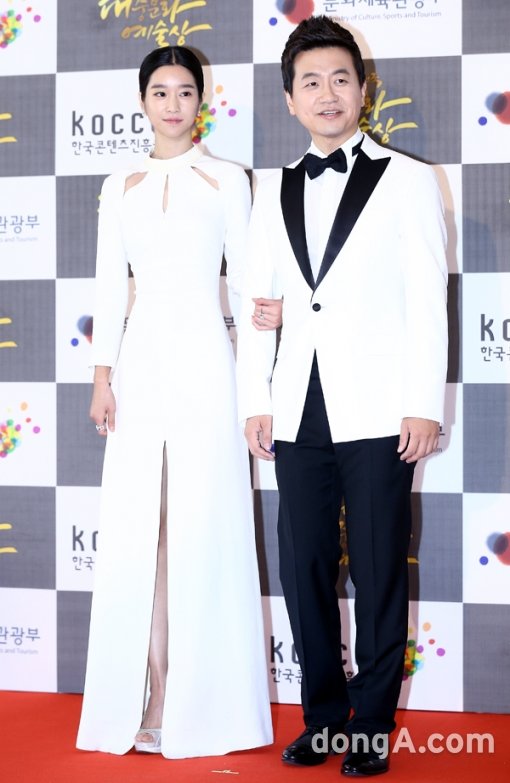 배우 서예지, 송영길 아나운서가 29일 오후 서울 중구 국립극장 해오름극장에서 열린 ‘2015년 대한민국 대중문화예술상 시상식’에 참석해 포토타임을 하고 있다.