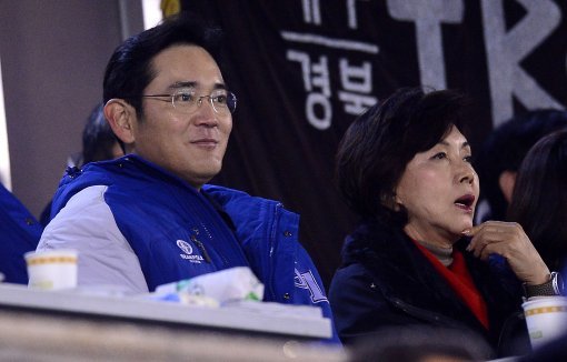 이재용 부회장과 어머니 홍라희 여사가 경기를 관전하고 있다.