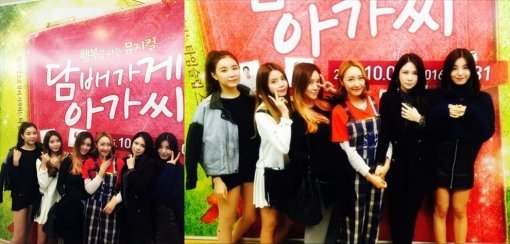 가비엔제이의 소속사 굿펠라스-KW 엔터테인먼트 측은 30일 공식 SNS를 통해 뮤지컬 ‘담배가게 아가씨 시즌2’의 여주인공으로 열연 중인 전 멤버 장희영을 응원하기 위해 뭉친 가비엔제이 6인의 모습을 공개 공개했다.