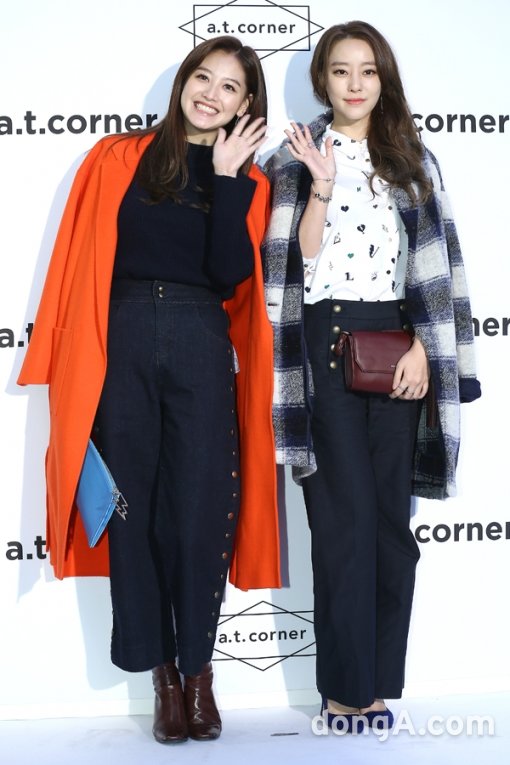 레인보우의 멤버 재경(왼쪽), 우리가 30일 오후 서울시 중구 명동 엣코너 스토어에서 열린 ‘엣코너 쇼핑 나잇 파티’에 참석해 포토타임을 하고 있다.