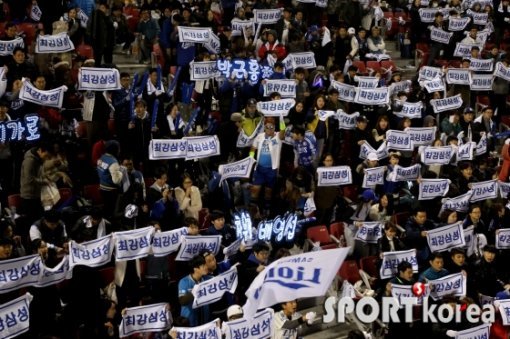 30일 오후 서울 잠실야구장에서 열린 `2015 타이어뱅크 KBO 리그` 두산 베어스 대 삼성 라이온즈 한국시리즈 4차전을 찾은 삼성 팬들이 열광 응원을 펼치고 있다.