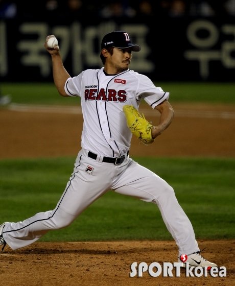 30일 오후 서울 잠실야구장에서 열린 `2015 타이어뱅크 KBO 리그` 두산 베어스 대 삼성 라이온즈 한국시리즈 4차전 3회초 마운드에 오른 두산 노경은이 역투하고 있다.