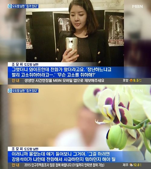 30일 MBN '뉴스8'에는 강용석 변호사와 스캔들에 휩싸인 블로거 도도맘(본명 김미나) 남편 조 모씨가 출연했다.