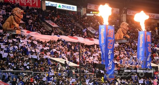 30일 서울 잠실야구장에서 `2015 타이어뱅크 KBO 리그` 한국시리즈 4차전 두산 베어스와 삼성 라이온즈의 경기가 열렸다. 삼성 응원단이 열정적인 응원을 펼치고 있다.
