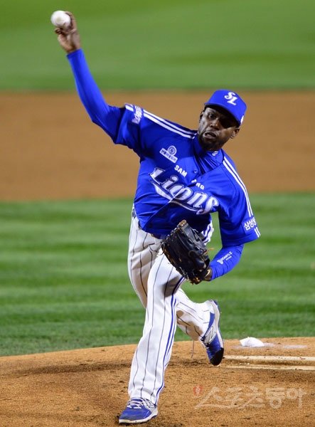 30일 서울 잠실야구장에서 ‘2015 타이어뱅크 KBO 리그’ 한국시리즈 4차전 두산 베어스와 삼성 라이온즈의 경기가 열렸다. 1회말 삼성 선발 피가로가 힘차게 공을 던지고 있다. 잠실|김진환 기자 kwangshin00@donga.com