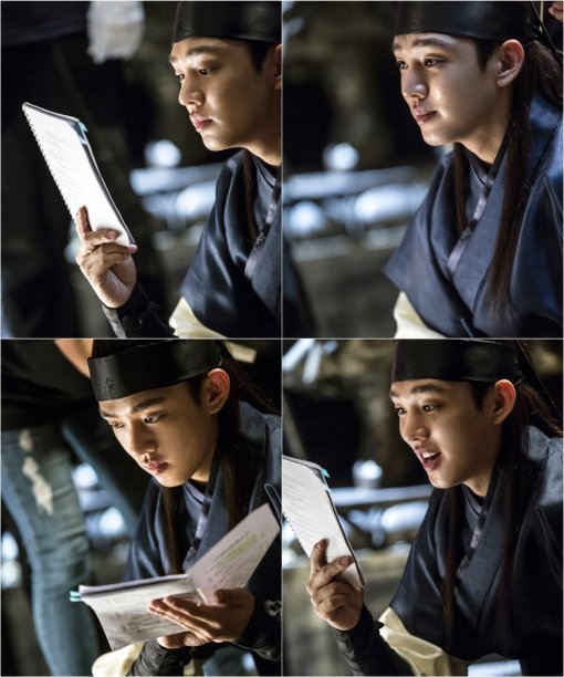 영화 ‘베테랑’, ‘사도’에 이어 ‘육룡이 나르샤’로 3연타 흥행배우로 우뚝 선 유아인이 24시간이 모자라게 사랑해 마지않는 것은 다름 아닌 ‘육룡이 나르샤’ 대본. 리허설 현장을 담은 현장 사진 속 유아인은 대사와 감정선을 꼼꼼하게 확인하면서 실제 촬영처럼 실감 나는 연기를 펼치고 있다.
