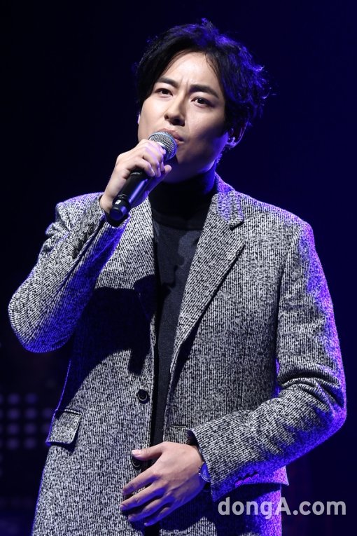 배우 이지훈이 4일 오후 서울 강남구 일지아트홀에서 열린 뮤지컬 '벽을 뚫는 남자' 제작발표회에 참석해 노래 시연을 하고 있다.