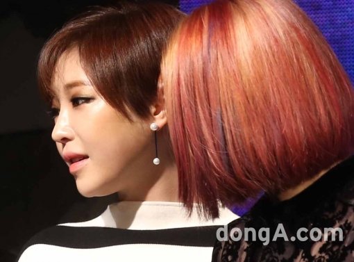 브라운아이드걸스의 가인(왼쪽)이 4일 오후 서울 용산구 현대카드 언더스테이지에서 열린 쇼케이스에 참석하고 있다.