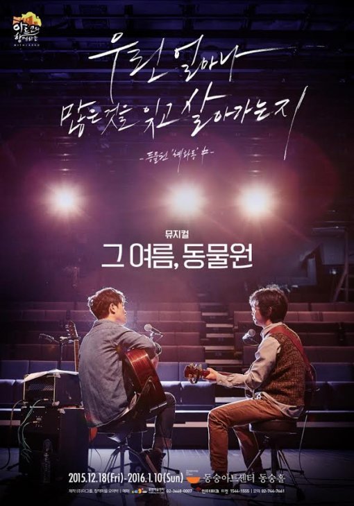 ‘동물원’의 실제 멤버인 박기영이 음악감독으로 참여해 음악성에 진정성을 더했다. ‘혜화동’, ‘잊혀지는 것’, ‘변해가네’ 등 주옥같은 ‘동물원’의 음악을 한 자리에서 만날 수 있는 기회다.