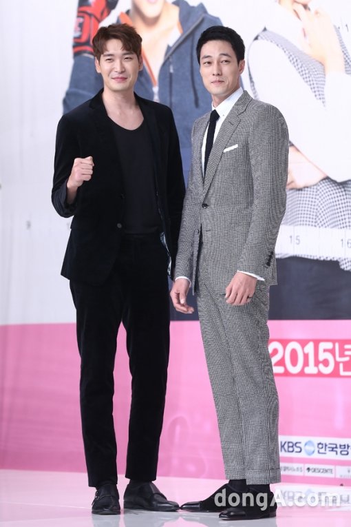 배우 정겨운(왼쪽), 소지섭이11일 오후 서울시 영등포구 영등포 타임스퀘어에서 열린 KBS 새 월화드라마 ‘오 마이 비너스’ 제작발표회에 참석해 포토타임을 하고 있다.