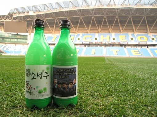 인천 지역 대표 막걸리 ‘소성주’에 인천유나이티드 선수들의 얼굴이 실렸다.