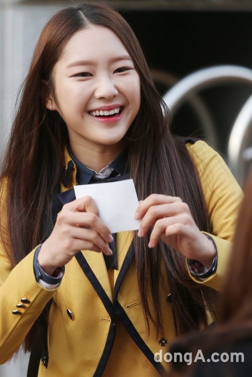 걸그룹 오마이걸의 지호가 12일 오전 서울 영등포구 영등포여고 앞에서 2016 대학수학능력시험을 보기 전에 밝은 표정을 짓고 있다.