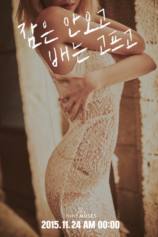 공개된 사진에는 새 미니앨범 타이틀 '잠은 안오고 배는 고프고' 제목과 함께 얼굴을 가린 나인뮤지스의 멤버가 순백의 시스루 드레스를 입고 온몸을 감싸고 있는 모습이 담겼다.