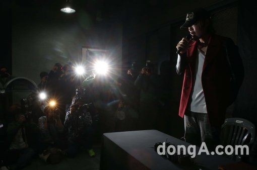 이종격투기 선수 최홍만이 13일 오후 서울 강남구 ROAD FC 압구정GYM에서 기자회견에 참석해 인사말을 하고 있다.