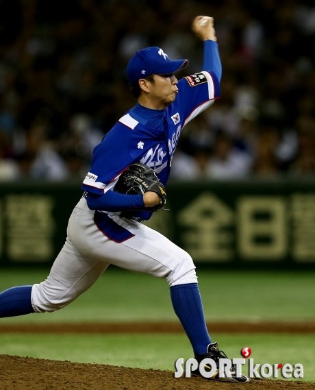19일 오후 일본 도쿄돔구장에서 열린 2015 WBSC 프리미어12 한국대표팀 대 일본대표팀의 준결승전 7회말 무사 1,2루에서 마운드에 오른 한국 정우람이 역투하고 있다.