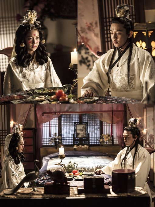 신부인 민다경은 얼굴에 붉은 연지곤지를 찍은 모습이다. 하지만 똑 부러지고 당찬 성격 그대로, 수줍음 보다는 당돌함이 엿보인다. 그녀는 두 눈을 크게 뜬 채 이방원을 바라보고 있다. 반면 신랑인 이방원은 신부 민다경과 눈을 마주치지 않고 있어 눈길을 끈다. 두 사람의 시선이 엇갈리는 가운데, 방안 가득 미묘한 긴장감이 감돈다.