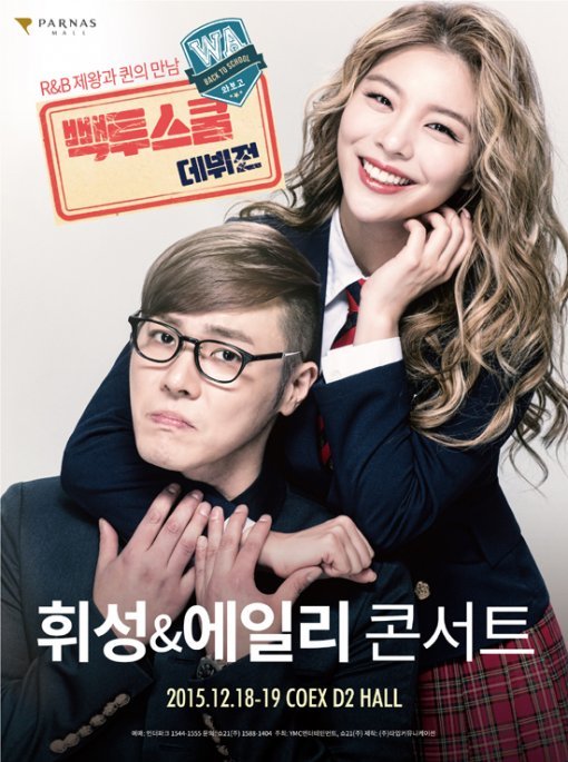 휘성과 에일리는 오는 12월 18, 19일 이틀 동안 서울 삼성동 소재의 코엑스 D2홀에서 합동콘서트 ‘빽투스쿨(Back to School)’을 개최하고 팬들과 만난다.