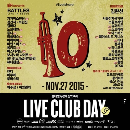 이번 '라이브 클럽데이'에는 시나위의 보컬 김바다를 필두로 록밴드 헬로 스트레인저, 버스터리드가 함께 참여한다. 호소력 짙은 감성과 독특한 음색의 김바다, 다이나믹한 에너지에 서정적인 가사와 멜로디를 자랑하는 헬로 스트레인저, 특유의 시원하고 파워풀한 무대를 자랑하는 버스터리드는 음악 축제인 '라이브 클럽데이'를 통해 뜨거운 무대를 꾸밀 예정이다.