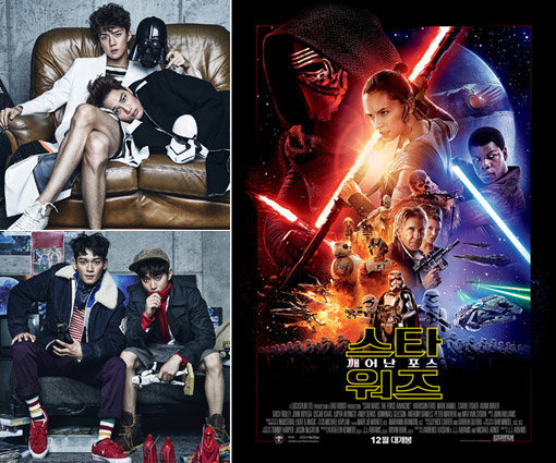 엑소는 12월17일 개봉하는 ‘스타워즈:깨어난 포스’를 알리는 책임을 맡았다. 그동안 아이돌 스타가 할리우드 블록버스터의 개봉에 맞춰 홍보대사로 활동한 경우는 간혹 있었지만 엑소의 범위는 전방위에서 이뤄진다.