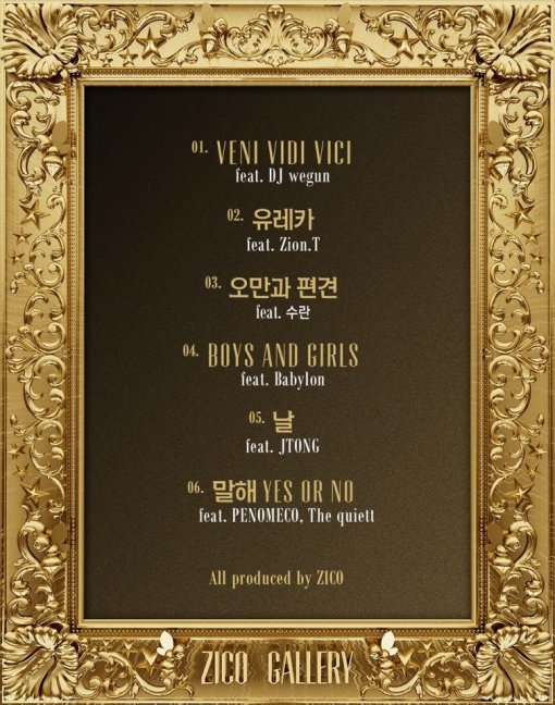 블락비 지코가 오는 12월 7일 발매를 앞둔 미니앨범 ‘Gallery(갤러리)’의 트랙리스트를 공개해 화제다.
