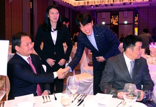 스포츠동아, 동아일보, 채널A가 공동으로 주최하고 국내 5대 프로스포츠(프로야구·프로축구·남녀프로농구·남녀프로배구·남녀프로골프) 종목별로 올 한해를 빛낸 최고의 선수를 선정하는 ‘2015 동아스포츠대상’ 시상식이 1일 오전 11시 서울 광화문 포시즌호텔에서 개최됐다. 울산모비스 유재학 감독과 우리은행 위성우 감독이 인사를 나누고 있다.