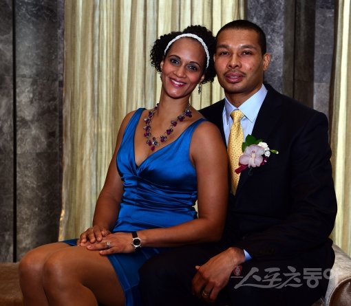 문태종이 아내와 참석해 기념촬영을 하고 있다.