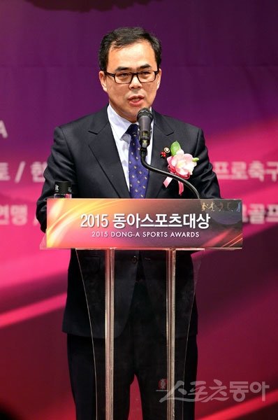‘2015 동아스포츠대상’ 시상식 개최를 진심으로 축하드리며, 바쁘신 가운데에도 자리를 함께해주신 선수와 내빈 여러분께 깊이 감사드립니다. 특히 국내 최고 권위의 ‘동아스포츠대상’의 영예를 안으신 수상자 여러분께 축하의 말씀을 전합니다.