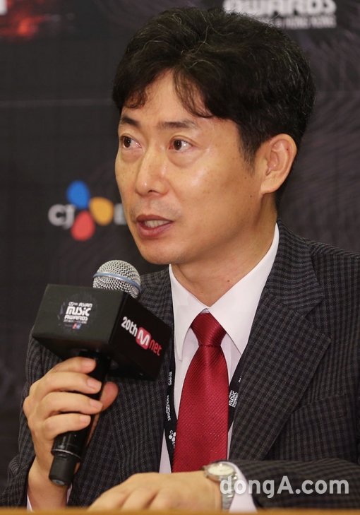김진국 아롱엘텍 대표가 2일 오전 홍콩 아시아월드 엑스포에서 열린 2015 MAMA' 웰컴 미팅 1부 관계자 기자간담회에 참석해 인사말을 하고 있다.