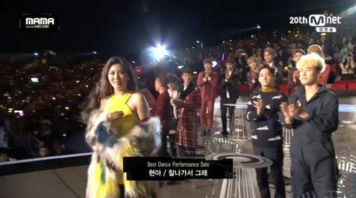 ‘2015 MAMA’ 에서 현아가 베스트댄스퍼포먼스 솔로 상을 수상했다.