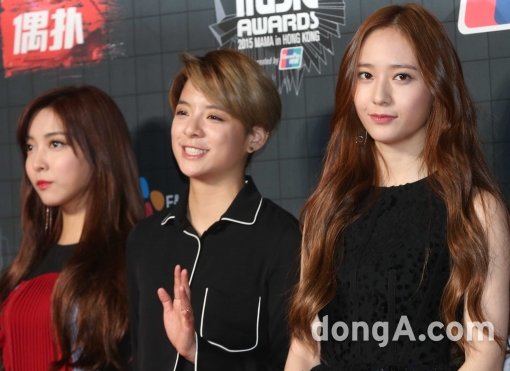 걸그룹 에프엑스가 2일 오후 홍콩 아시아월드 엑스포에서 열린 2015 마마(MAMA)'(Mnet Asian Music Awards, 엠넷 아시안 뮤직어워즈)에 참석해 포토타임을 하고 있다.