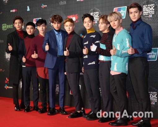 그룹 엑소가 2일 오후 홍콩 아시아월드 엑스포에서 열린 2015 마마(MAMA)'(Mnet Asian Music Awards, 엠넷 아시안 뮤직어워즈)에 참석해 포토타임을 하고 있다.