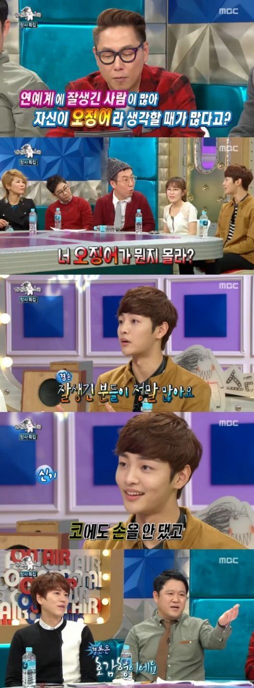 이날 MC들은 “(김민재가) 연예계에 잘생긴 사람들이 많아서 자신이 오징어가 될 때가 있다는 생각을 했다더라”고 말했다.