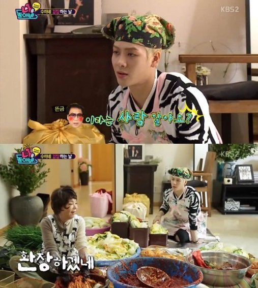 KBS 2TV ‘나를 돌아봐’ 4일 방송에서는 김장을 함께 담그기 위해 잭슨과 박명수가 김수미의 집을 방문했다.