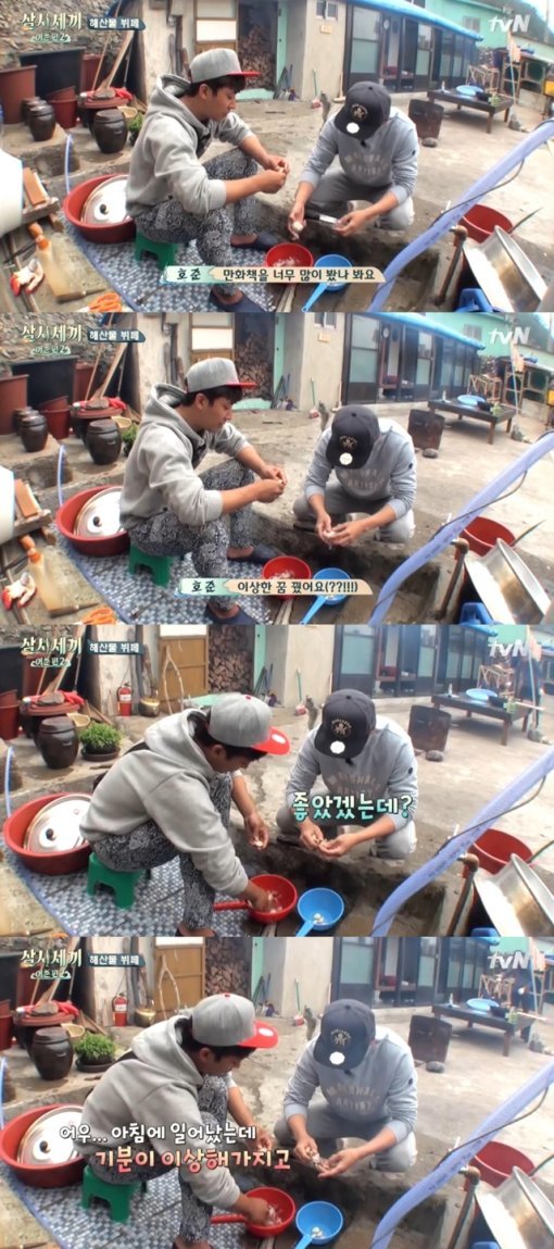 이날 손호준은 윤계상과 함께 아침 식사 재료를 손질하던 중 “만화책을 너무 많이 봤나 보다”라고 말했다.