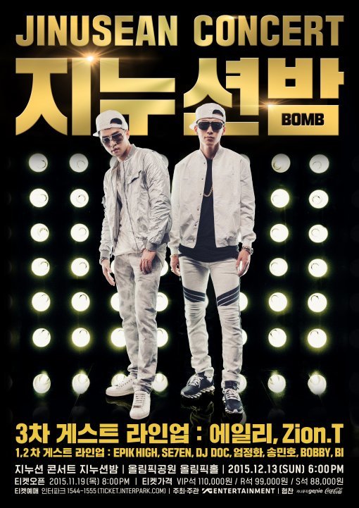 현재 새 앨범 준비를 하며 제2의 전성기를 맞이할 준비를 하고 있는 지누션이 올 한해 얻은 뜨거운 관심과 사랑에 보답하기 위해 마련하는 이번 콘서트에서는 90년대를 휩쓸었던 ‘말해줘’, ‘전화번호’, ‘A-YO’ 등 당시 히트곡들을 비롯해 2015년 신곡 ‘한번 더 말해줘’, 또 남녀노소가 함께 즐길 수 있는 다양한 무대들이 선보일 예정이다.