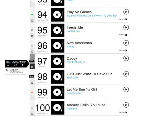 빌보드가 8일(현지시간) 발표한 HOT 100 차트에 따르면 싸이의 ‘Daddy’는 97위로 진입했다.