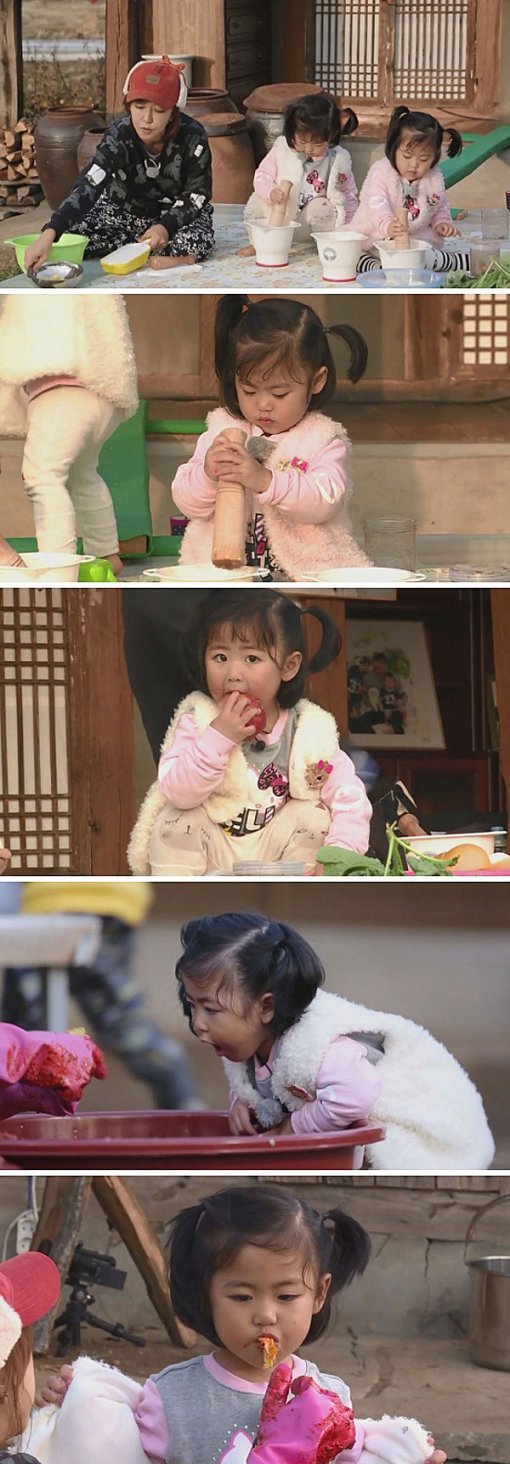라율이의 먹성은 우여곡절 끝에 김치를 완성한 순간 빛을 발했다. 새빨간 김치를 발견하자마자 라율이가 “엄마 김치!”라며 흥분을 감추지 못한 것. 기대하던 김치를 맛본 라율이는 급하게 공기를 들이마시고, 혀를 날름거리는 등 매운 기색을 감추지 못하면서도 계속해서 김치를 먹으려고 해 엄마 슈를 폭소케 했다는 후문이다.
