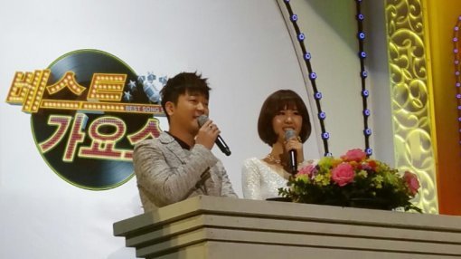 가수 박현빈과 윤수현이 8일 경기 남양주화도체육문화센터에서 열린 OBS 경인TV 가요프로그램 ‘베스트 가요쇼’의 공동진행자로 호흡을 맞췄다.
