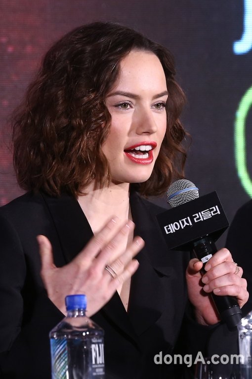 배우 데이지 리들리가 9일 오전 서울 영등포구 콘래드호텔에서 열린 영화 '스타워즈:깨어난 포스'의 기자회견에 참석해 질의응답을 하고 있다.