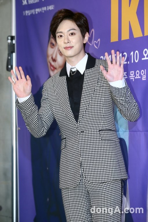 보이프렌드의 멤버 동현이 9일 오후 서울 서초구 신사장갤러리에서 열린 웹드라마 ‘1km 그와 나의 거리’ 제작발표회에 참석해 포토타임을 하고 있다.