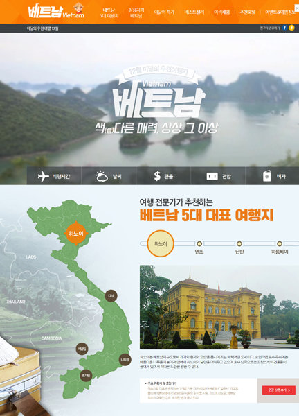 베트남은 2012년 이후 하나투어 동남아 여행객 수요의 20% 이상을 차지하는 지역이다. 올해 16만6000여명이 베트남을 찾았다. 최근에는 수도 하노이뿐 아니라 다낭, 나트랑 등 다른 도시들도 주목받고 있다. 이중 특히 허니문 여행지로 급부상한 다낭은 올해만 2만9000여명이 찾아 전년 대비 45%의 성장률을 보였다. 항공사도 ‘인천-하노이’ 노선을 증편하고 있으며, 올해 진에어와 제주항공이 하노이와 다낭에 신규 취항했다.