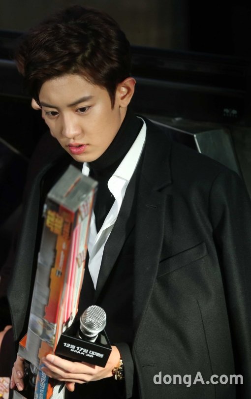 그룹 엑소의 찬열이 9일 오후 서울 강남구 힐탑호텔에서 열린 영화 스타워즈:깨어난 포스’ 팬 이벤트에서 데이지 리들리에게 받은 선물을 살펴보고 있다.