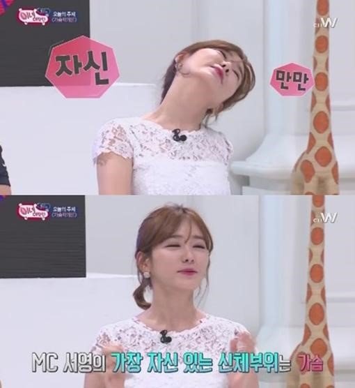 또 공서영은 "드러내놓고 다니진 않지만 '어디가 가장 자신 있냐'고 물으면 가슴이라고 말한다"며 가슴에 대한 자신감을 보였다.